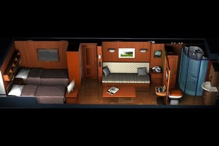 - LED screens, music system, adjustable climate control, multimedia computer with free internet connection and in-room telephone.